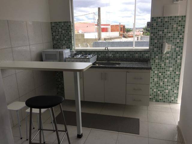 Apartamento, Studio, mobiliado com geladeira, fogão, microondas, cama, armário, ar condicionado, opção de locação com ou sem garagem, tv, mesa, cadeiras, churrasqueira, Wi-Fi como cortesia.